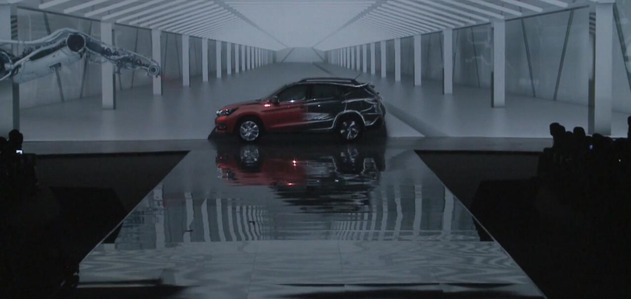 汽車與機械臂的搭配增加未來感,同時使用在車體投影的方式,來展示汽車優越的機械結構,讓觀眾更能具體地感受到比亞迪宋的魅力。